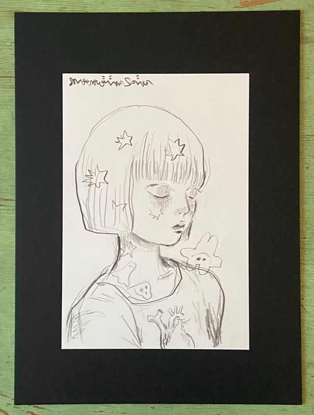 『ツノを持っている』 鉛筆/ケント紙 (額装はなし、 200mm×200mmのマット紙付) 145mm×145mm Due to a combination of factors, the postal situation is currently very bad, and it seems to take much longer than usual. Some countries may not be able to ship, so please check if it is possible to ship from Japan to your country. https://www.post.japanpost.jp/int/information/overview_en.html Thank you very much!