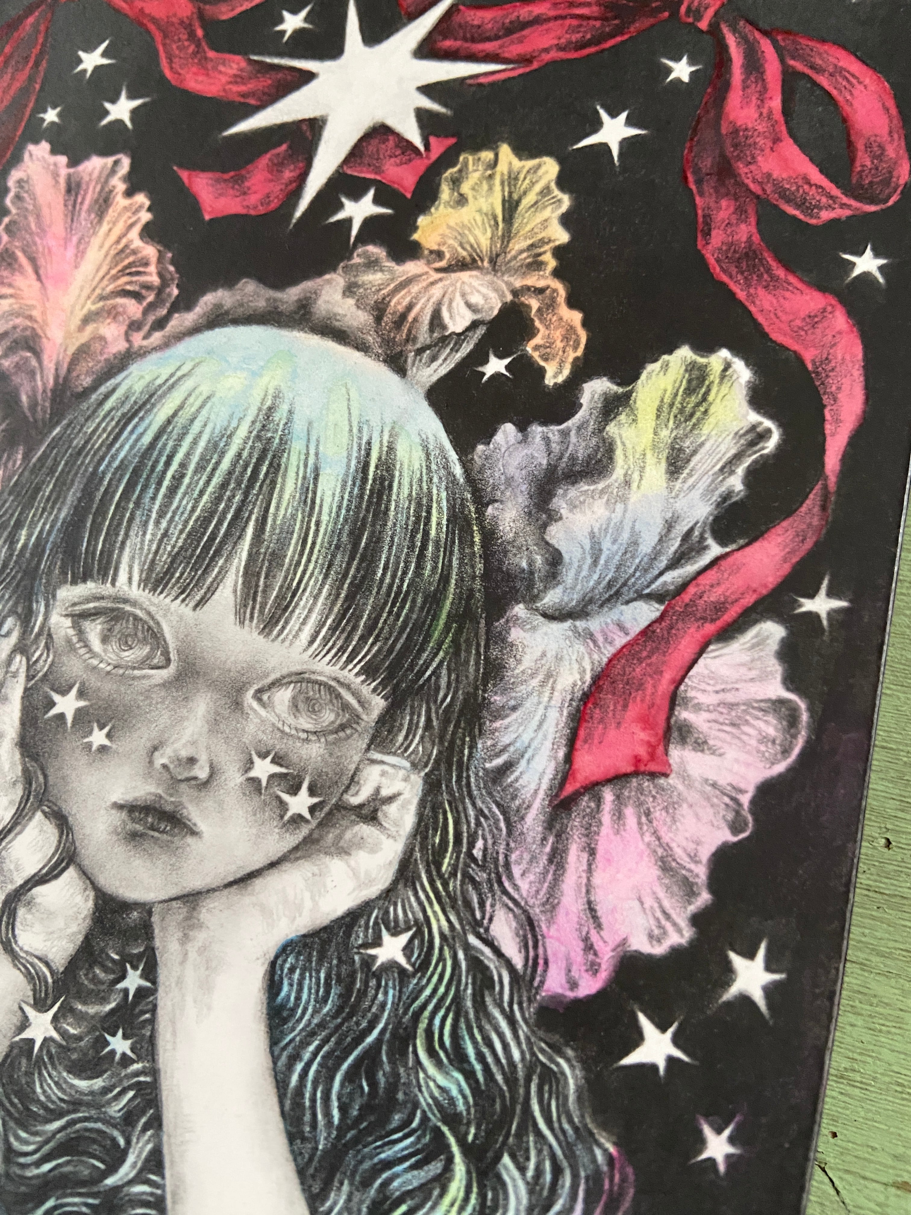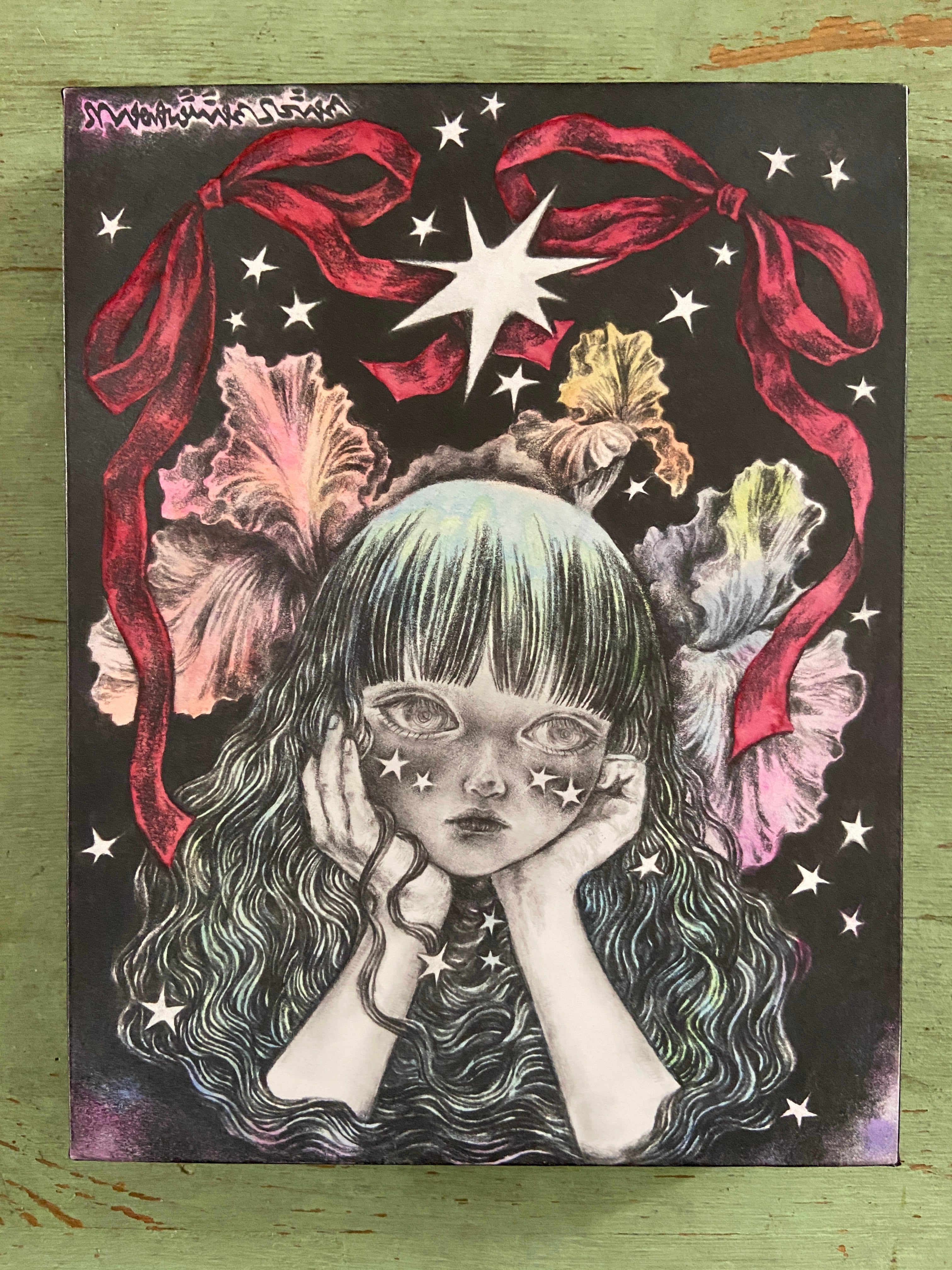 鉛筆、水彩絵の具、顔彩、ケント紙、木製パネル
